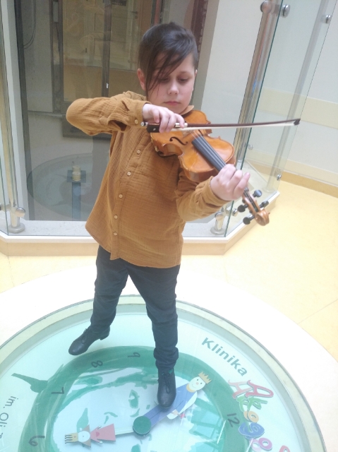 15 maja o godzinie 16 wszystkie dzieci przebywające w Klinice Budzik i ich rodzice zostali zaproszeni do holu głównego na Koncert Skrzypcowy. Solistą był 9-letni Wiktor, prywatnie brat jednego z naszych młodszych pacjentów, Mikołaja. Wiktor zaprezentował utwory klasyczne takie jak Polonez czy Concertino w stylu węgierskim, oraz bardziej popularne które widownia odgadła bez problemu m.in. Despasito i motyw z filmu Piraci z Karaibów.